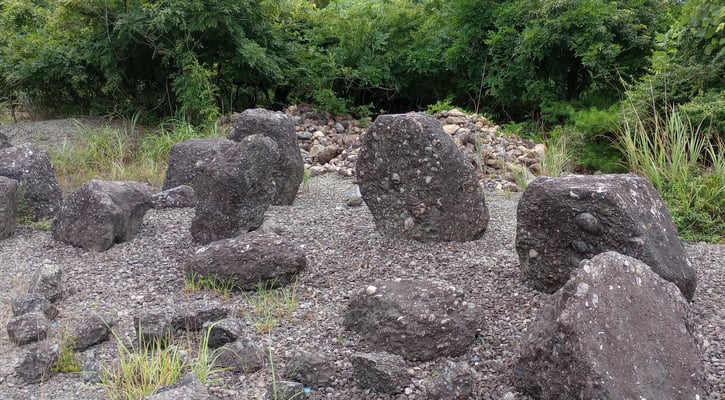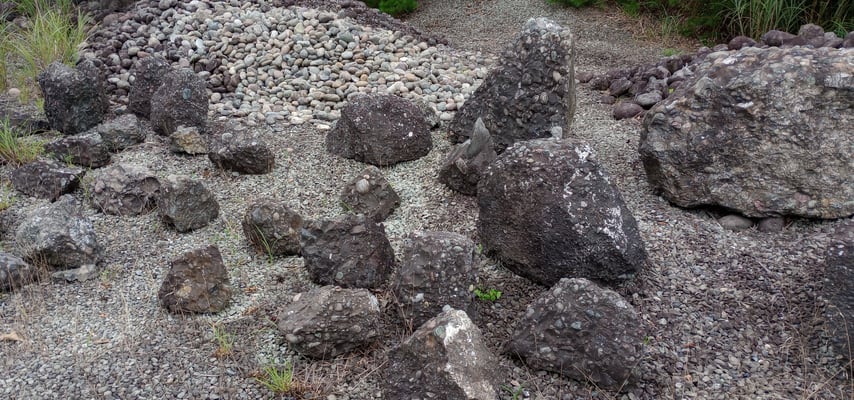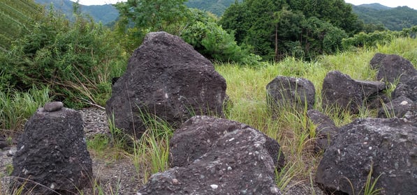 下の写真にある「さざれの杜」には、大小さまざまなさざれ石が置かれていますが、これが残された数少ないさざれ石の一部です。