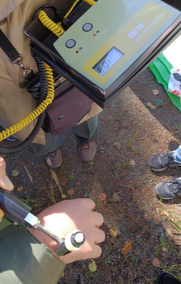 以下の写真は、以前、工学博士の調査に同行した際に、ノイロメーター(体内電流測定器)を使用して気場の強さを測定した結果です。
